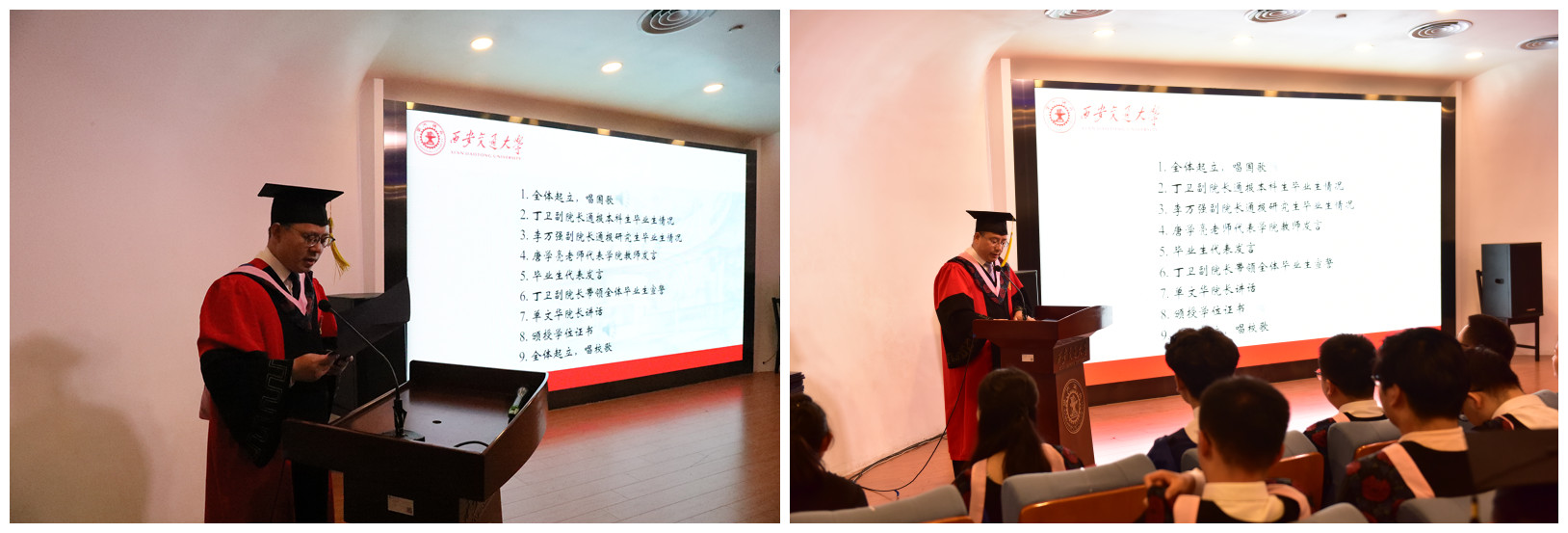 毕业典礼在庄严的国歌中开始。首先,丁卫副院长和李万强副院长分别通报了2021届本科生和研究生的就业情况。必一网页版登录界面2021届本科生到国内外一流高校深造的比例较往年大幅增长,研究生中有20余名研究生选择留在西部地区到祖国最需要的地方建功立业,另有5名研究生录取为选调生,前往基层、奉献社会、服务人民,用青春书写华彩篇章。