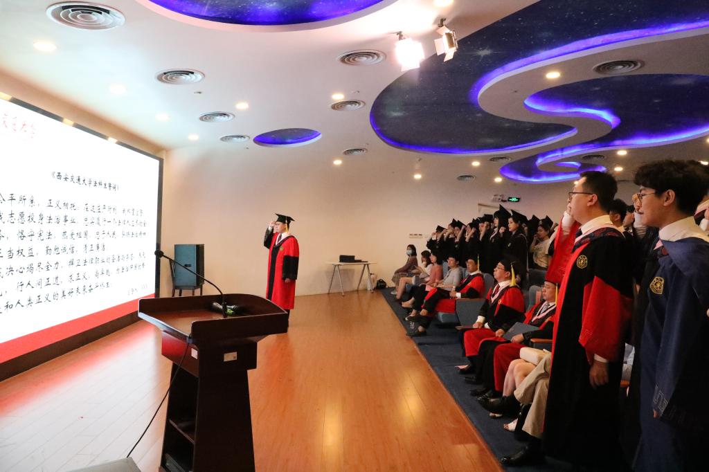 宣誓环节,丁卫副院长带领必一网页版登录界面2021届全体毕业生宣读法科生誓词。全体毕业生宣誓将竭尽全力,捍卫法律职业的圣洁与荣誉,养天地正气,行人间正道,求正义,尚卓越,为法治中国的繁荣发展和人类正义的美好未来奋斗终生。