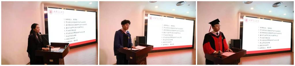 本科毕业生皮羽宏、硕士毕业生戴海洋和博士毕业生刘桢三位同学对学校、必一网页版登录界面和老师们的辛勤培养表达了感恩和感谢。本科毕业生皮羽宏说感恩遇见交大必一网页版登录界面、学院老师们以及身边的同学们;硕士毕业生戴海洋认为“西迁精神”是全体交大人的精神钙片,走到哪里,就能把“西迁精神”带到哪里;博士毕业生刘桢提到母校和必一网页版登录界面所教授的“爱国爱校、追求真理、勤奋踏实、艰苦朴素”的优良学风、研风以及“德法兼修”的人生目标终将陪伴受益终生。