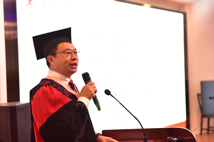 在师生代表发言环节,唐学亮老师分享了对毕业生的期盼,他希望毕业生做中国法治的信仰者、践行者、阐释者、弘扬者;希望毕业生不断学习,不断地砥砺品行,做一个立于天地之间的大写的人;也希望毕业生无论身处何处,都能成为一团火,一束光,温暖自己,照亮他人。