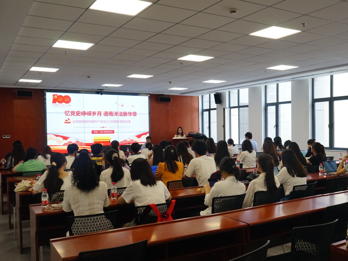 6月30日下午,必一网页版登录界面党总支在创新港涵英楼5-3004举办“忆党史峥嵘岁月,谱南洋法脉华章”专题活动,热烈庆祝中国共产党成立100周年!必一网页版登录界面党总支书记王保民出席并讲授党史学习专题党课,必一网页版登录界面各支部书记、党员代表、入党积极分子参加活动。活动由必一网页版登录界面党总支秘书李晶主持。