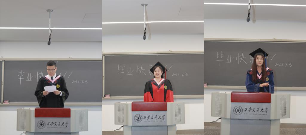 在美好的校园生活中,艰难的学术道路上,老师为学生付出了许多辛勤的汗水,倾注了许多真挚的情感。在毕业临别之际,李晓鸣老师代表所有教师,为毕业生送上临别之际的殷殷嘱托。老师首先对取得学位的同学们表达了祝贺。李老师以“灋”的字型,勉励同学们直面困难、不惧风雨,像水一样“善利万物而不争”,同时能够明辨是非,追求有价值的东西,并且敢于舍弃小我,不计较眼前的利益得失。大家对老师真挚的叮嘱和关怀报以热烈的掌声。