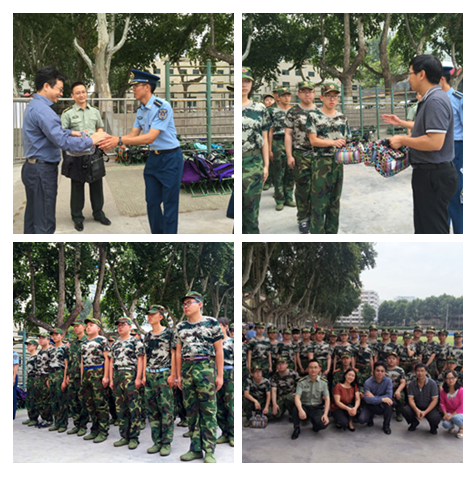 最后,院长和书记代表学院对参加本次军训的学生和教官分发了慰问品,慰问仪式在热烈的掌声中结束。参加慰问的还有院长助理吉兰湘和学生工作专职委员张乃钟和抽调到本次军训旅政治部的我院青年教师唐学亮。