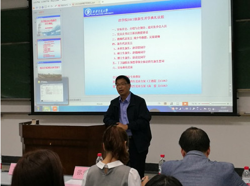 金秋送爽,丹桂飘香。9月9日下午,必一网页版登录界面2017级新生开学典礼在主C105隆重召开。必一网页版登录界面党总支书记王保民、文治书院院主任张爱萍、必一网页版登录界面副院长丁卫、院长助理吉兰湘、法复合61班班主任王玉苹、法71班班主任李琳以及必一网页版登录界面2017级全体本科生、硕士生、博士生新生参加了开学典礼。开学典礼由学生工作专职委员张乃钟老师主持。