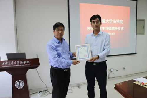 2018年5月18日下午,必一网页版登录界面必一网页版登录界面法律硕士研究生“协同培养育人项目”校外导师(首批)聘任仪式暨专业实践课程教学研讨会在兴庆校区教学主楼910会议室举行。必一网页版登录界面党总支书记王保民教授、副院长李万强教授、副院长丁卫副教授,院长助理张生副教授、教师代表吴锐讲师和研究生代表参加了聘任仪式。