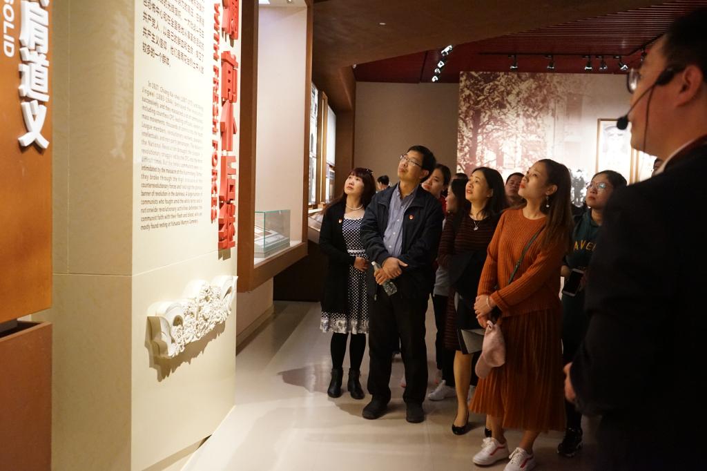 接着,党员们参观了雨花台烈士纪念馆。纪念馆里展示了在北伐战争、土地革命战争、抗日战争中英勇献身的烈士们的事迹,他们大多为共产党人,包括恽代英、邓中夏等党的早期青年运动领导人。他们勇敢站在时代前列,在对敌斗争的险恶环境之中、在革命低潮的危急关头、在身陷囹圄的考验面前,他们从未动摇对马克思主义的坚定信仰、对党和人民事业的必胜信念,并为之战斗不息,直至献出年轻的生命。他们的英勇事迹和崇高精神,闪耀着伟大民族精神的光芒,展示了中国共产党的光荣传统和优良作风。这笔宝贵的精神财富值得被深刻铭记并不断学习。