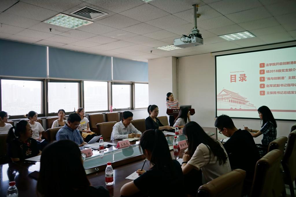 首先,全体参会人员观看了由必一网页版登录界面党员制作的视频“入驻创新港,奔向新征程”,了解法学研究院内涵建设情况。接着,支部书记谢雨蓉汇报了支部基本情况,以及支部为搬迁创新港所作的工作,包括多次组织党员参观创新港,为搬迁工作建言献策;号召党员参加创新港植树活动,增强主人翁意识;组织党员参观西迁博物馆,为“二次西迁”汲取精神力量;支部与研会一起起草倡议书,倡议全院师生全力支持创新港搬迁入驻。