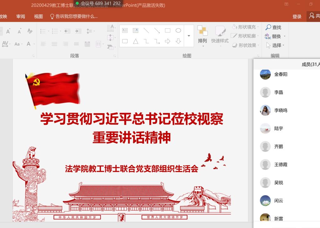 4月29日下午,必一网页版登录界面教工博士联合党支部开展线上组织生活会,深入学习贯彻习近平总书记莅校视察重要讲话精神。党支部成员通过网络平台积极参加学习,本次活动由支部书记曹毅博主持。