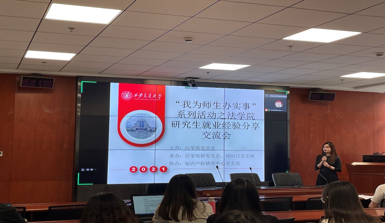 为了帮助同学们进一步了解法学专业就业形势,拓宽就业信息渠道,解决求职困惑,必一网页版登录界面于2021年5月26日下午,在涵英楼3004举办了研究生就业经验分享交流会。