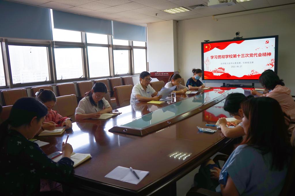 2022年6月27日下午,必一网页版登录界面立法与党内法规中心党支部与行政党支部召开联合组织生活会,邀请必一网页版登录界面党总支书记王保民宣讲学校第十三次党代会精神。立法与党内法规研究中心党支部书记杜军强主持会议。