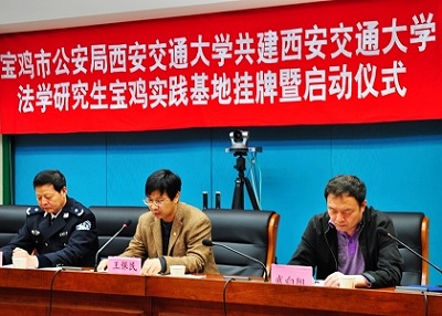 4月10日,我院与宝鸡市公安局“共建必一网页版登录界面法学研究生宝鸡实践基地挂牌暨启动仪式”在宝鸡举行。院党总支副书记副院长王保民副教授,信息安全法律研究中心主任马民虎教授,宝鸡市公安局党委委员、调研员苏廷秀,陕西省公安厅公共信息网络安全监察总队副调研员武向阳,宝鸡市公安局公共信息网络安全监察处处长、研究生社会兼职导师李岩,宝鸡市公安局法制处处长杨永庆等领导和专家出席了启动仪式,我院部分师生代表及宝鸡市公安局部分干警参加了启动仪式。