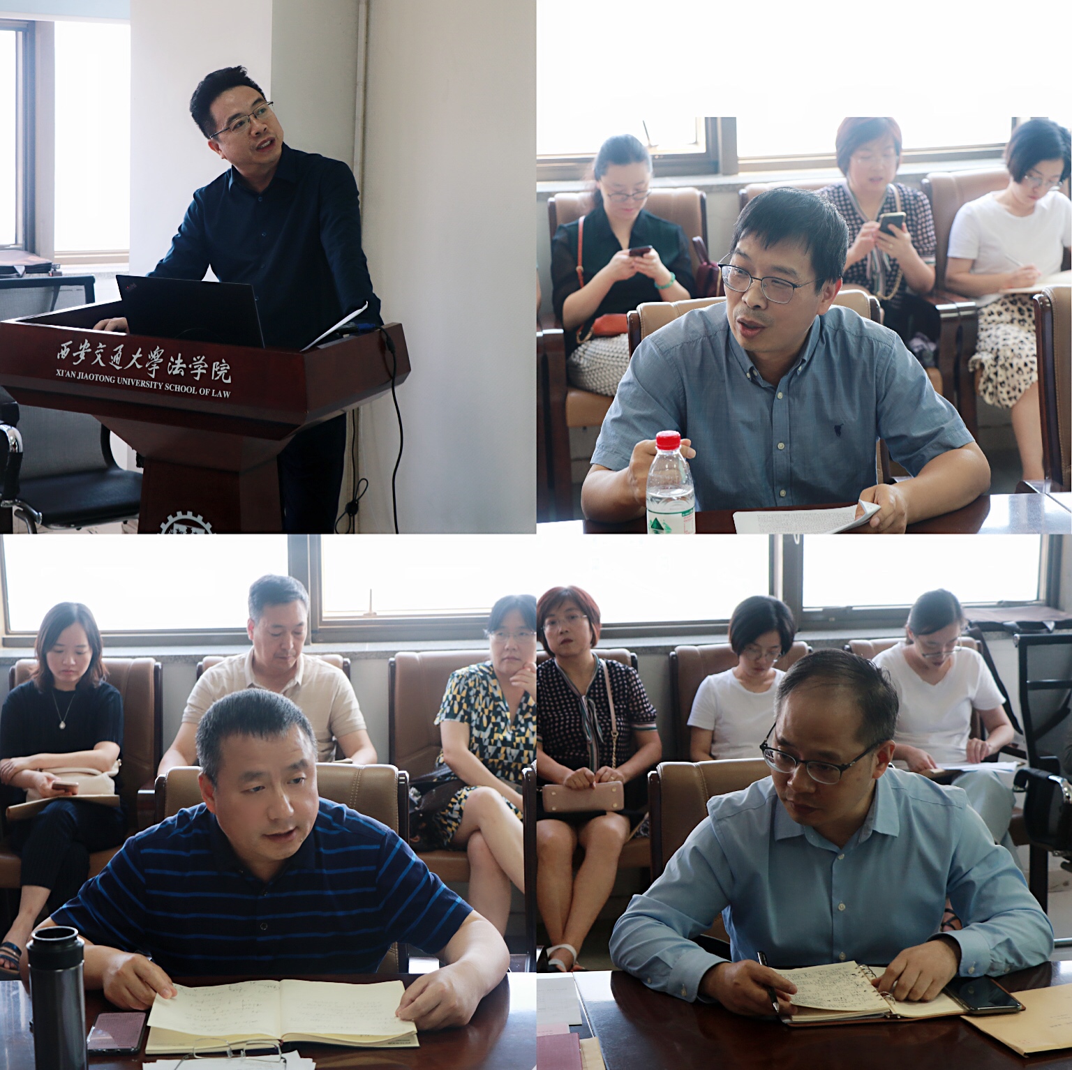 接下来,李万强副院长通报了本年度硕士研究生招生、留学生培养、队伍建设、新港报告等情况,部署安排了一流学科中期评估、创新港搬迁等工作。他重点通报了创新港法学研究院内部装修、体制机制建设等情况,通报了创新港新生课程安排,再次强调研究生导师要做好对学生的培养工作,加强对学生的关心和联系。丁卫副院长重点通报了学院在本科教学和科学研究方面的工作进展。2019年上半年,学院积极参加首批一流专业评选;在首次大类招生后的专业分流中,法学专业学生呈现出生源质量高、专业兴趣浓厚等特点。丁卫副院长通报了学院上半年在科研立项、成果获奖、论文发表、智库建设等方面取得的成绩,并分析了存在的短板,提出了进一步工作思路。
