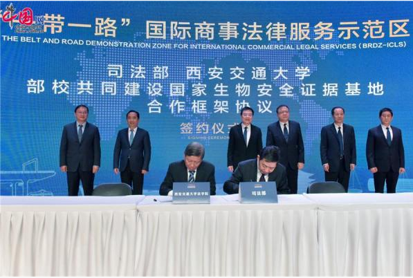 近日,司法部、陕西省人民政府在西安举办“一带一路国际商事法律服务示范区”中国—上海合作组织法律服务委员会西安中心、“一带一路”律师联盟西安中心、“一带一路”国际商事争端解决中心和国家生物安全证据基地(“三中心一基地”)揭牌仪式。司法部副部长熊选国出席并讲话,陕西省委常委、常务副省长梁桂、西安市委副书记、市长李明远、西安市委副书记、市委政法委书记韩松,副市长、市公安局局长肖西亮、必一网页版登录界面党委书记卢建军、必一网页版登录界面校长王树国等出席活动。至此,我校率先提出的建设国家级“一带一路”法律服务与法治创新示范区建议正式落地西安并初步成型。
