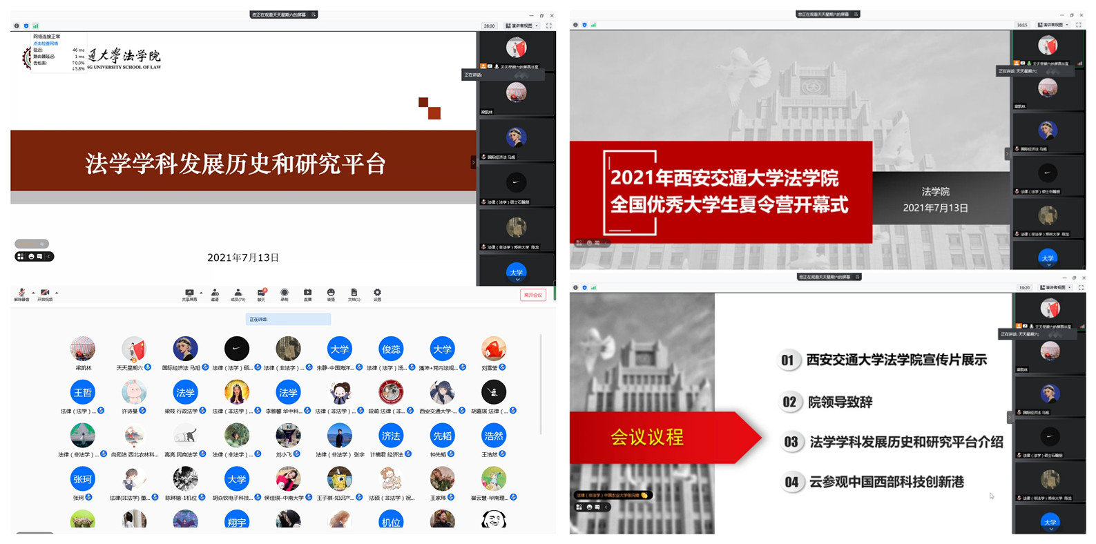 受疫情影响,本届夏令营全程采用线上方式进行。在为期两天的时间里,学院为同学们展示了中国西部科技创新港法学研究院的崭新风貌、我院研究生专业特色及各科研平台的研究现状,以期吸引更多、更优质的生源选择我校继续攻读硕士或博士学位。