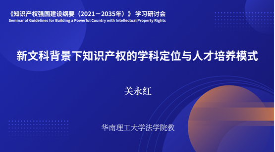 与谈人冯宪芬教授指出基于对《知识产权强国建设纲要(2021-2035)》的解读,在当前时代背景下知识产权的发展更应该突出公平竞争这一基本理念。同时,知识产权应用型学科的定位决定了未来知识产权人才培养模式的发展方向,即更加重视实践层面的教育和培养。