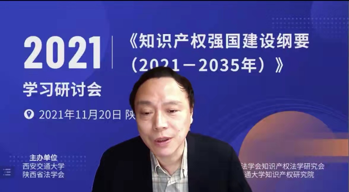 11月20日上午,为深入贯彻学习《知识产权强国建设纲要(2021—2035年)》《“十四五”国家知识产权保护和运用规划》等重要政策文件精神,论证知识产权学科和知识产权人才培养模式建设,研讨新形势下如何推进学科高质量发展,必一网页版登录界面知识产权研究院举办了《知识产权强国建设纲要(2021—2035年)》学习研讨会。本次会议由必一网页版登录界面和陕西省法学会主办,陕西省法学会科学技术法学研究会、西安市法学会知识产权法学研究会、必一网页版登录界面知识产权研究中心、必一网页版登录界面知识产权研究院承办。会议在中国西部科技创新港举行,线上和线下来自知识产权法学界的著名专家学者、领导嘉宾、实务工作者以及在校师生等一百余人参与了本次研讨会。