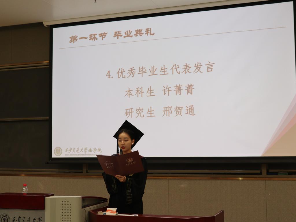 法律人是社会的公平所系、正义所托,全体毕业生庄严宣告:“要竭尽全力捍卫法律职业的圣洁与荣誉,为法治中国的繁荣发展和人类正义的美好未来奋斗终生。”在法律的指导下,将为社会公正、人民福祉和法治精神而奋斗。他们承诺将遵守法律、恪守职业道德,为维护社会正义和法律秩序竭尽全力。这个庄严的宣誓仪式代表了毕业生们对法律事业的坚定承诺,同时也象征着他们迈向新征程的决心。