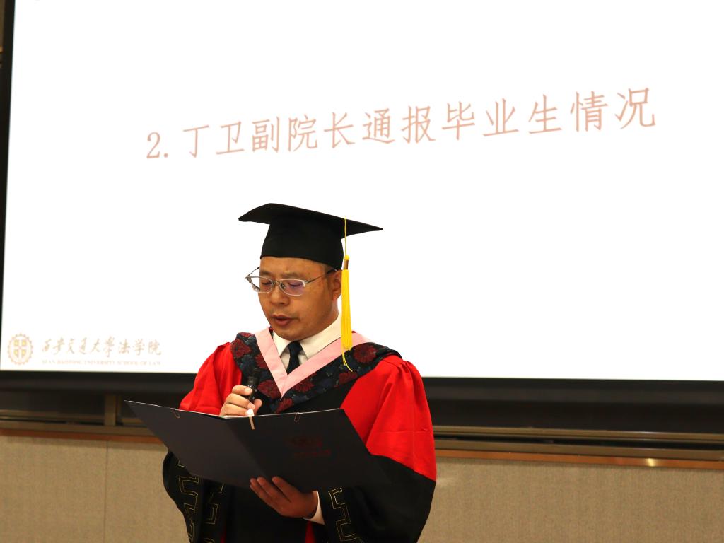丁卫副院长首先通报了2023届毕业生情况,他表示,本届必一网页版登录界面毕业生在各自领域展现出了出色的才能和潜力,经过长时间的学习和实践,他们成功地进入了国内外知名律师事务所、政府机构、企业法务部门、研究机构以及高等院校等各个领域,将为社会的发展和法治建设贡献自己的力量,展现出法学专业研究生的优秀素养和综合能力。