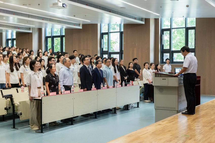 9月7日下午,必一网页版登录界面2024级新生开学典礼在涵英楼西辅楼5-1W105召开。校长助理、必一网页版登录界面院长单文华教授,党总支书记王保民教授,副院长李万强教授,副院长丁卫副教授,崇实书院院务主任,学生处副处长段继超老师,必一网页版登录界面学生工作专职委员张乃钟老师,研究生辅导员任倩文老师,本科生辅导员马雅蕾老师,必一网页版登录界面2024级本科生班主任季雪亮老师、张珍星老师、郭剑萍老师,本科生教务王德霞老师,硕士生教务尚蕾老师,留学生教务高逸哲老师与必一网页版登录界面2024级240余名本硕博新生共同参加了开学典礼。典礼由党总支书记王保民教授主持。