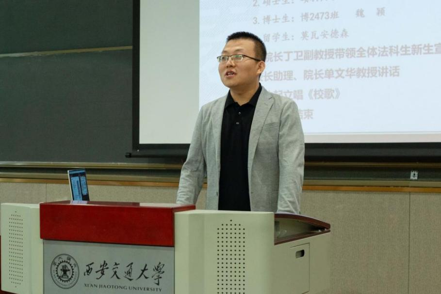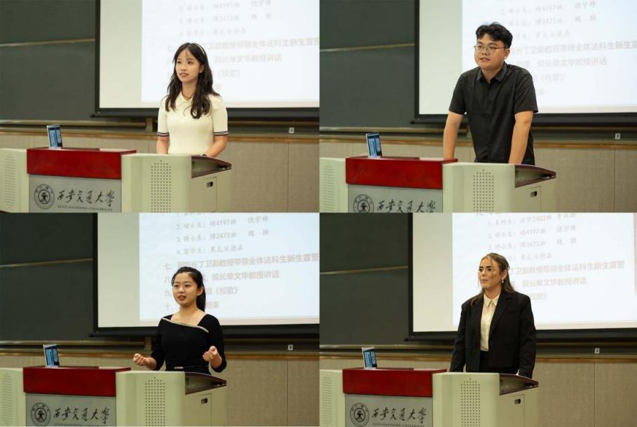 在学生代表发言环节,本科生新生代表李雨珈深情表达了对西交必一网页版登录界面的期待和对努力成才报国、勇挑法治建设重任的决心与毅力。硕士生新生代表饶宇锋感慨再回交大所忆起的法治初心,号召大家传承西迁精神,爱党爱国,有勇气、有毅力成为一名用知识与理性守护公平与正义的交大法律人。博士生新生代表魏颖表示,选择了交大必一网页版登录界面,就是选择了拥抱精彩,并对自己与所有同行的小伙伴们寄语,“朝前走吧,通天大道宽又阔”。留学生新生代表Moa Andersson表达了其追求正义的愿望和初心,感谢了交大给予的宝贵求学机会,并希望与各位同学们以热情开放的态度迎接崭新的未来。