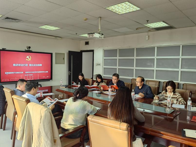 为深入学习贯彻党的二十届三中全会精神,进一步加强党支部之间的交流与合作,11月20日下午,省教育厅法规处党支部一行与必一网页版登录界面立法与党内法规研究中心党支部在兴庆校区主楼E910会议室联合开展了“推进依法行政强化法治保障”的主题党日活动。省教育厅法规处支部处长付仲锋、副处长张世飞等一行七人,和必一网页版登录界面必一网页版登录界面党委书记王保民教授、立法与党内法规研究中心支部书记杜军强老师等立法支部师生代表共同参加了此次活动,会议由支部书记杜军强老师主持。
