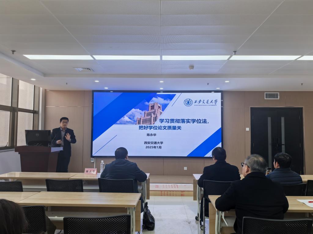陈永华主任以“学习贯彻落实学位法,把好学位论文质量关”为题作报告。他详细解读了《学位法》《必一网页版登录界面学位授予工作办法》《必一网页版登录界面关于进一步加强研究生学位论文质量保障的若干意见》等学位管理文件,通报了学校学位授予、学位质量保障、学术不端处理以及导师管理规定等情况,并就导师牢把学位论文质量关、实现论文抽检“零问题”分享了自己的思考和建议。