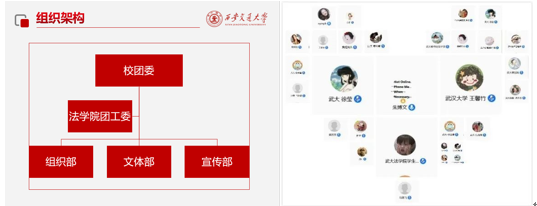 紧接着武汉大学必一网页版登录界面研究生会主席王馨竹也介绍了武大必一网页版登录界面研会的组织架构和职责分工,武大必一网页版登录界面研会始终秉承“自强、求是、弘毅、拓新”的武大精神,为法苑学子提供全方位的服务,调整后的团委及研究生会部门共有10个,包括宣传部、法律实践中心、秘书处、学术编辑部、文艺部、心理部、体育部、权益中心、外联部、就业服务中心。各部门负责人轮流详细介绍了所在部门的日常工作和举办的经典活动,权益中心的权益简报、校领导接待日,秘书处的模拟法庭比赛,外联部的线上自习室、学术编辑部的征文比赛等活动都引起了交大同学们的浓厚兴趣,双方就举办活动中的宣传方案、经费来源、激励机制、时间安排以及学业压力等细节问题进行了深入的探讨。
