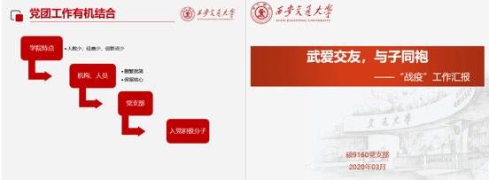 随后的党团工作交流环节,两院有关负责同学分别介绍了党团组织在抗疫期间的主要工作。交大必一网页版登录界面硕9160党支部书记孙阳表示,必一网页版登录界面各支部积极响应习近平总书记重要指示,落实党中央国务院决策部署,对标学校、学院防控要求;加强防疫宣传教育,引导学生带头守法;畅通信息报送渠道,保障日报制度运行;分享线上学习资源,配合做好线上授课筹备工作,号召同学在导师指导下深入研究疫情相关法律问题;倡导党员服务社区,组织党员捐款捐物。武大必一网页版登录界面团委学生副书记刘云梦表示,自疫情发生以来,学院迅速成立以党委统一领导、统一指挥的疫情防疫工作小组,形成了党总支、党支部、党员个人三级联动的有力防控网络,从理论学习、思想引领、基层服务多领域开展抗疫工作。团支部积极响应,组织学习“青年大学习”团课,开展主题团日活动,鼓励团员青年积极投身防疫工作,发挥团员的生力军作用。
