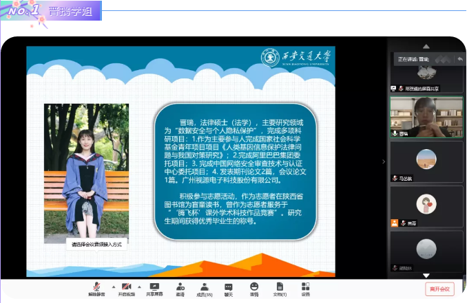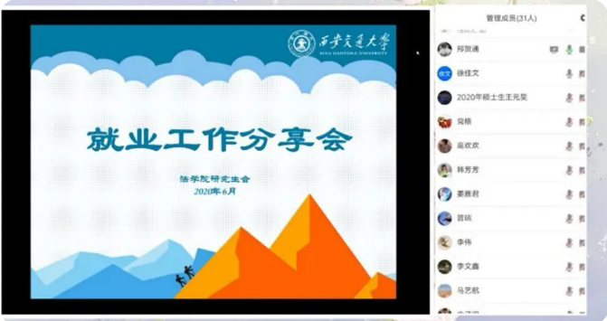 2020年6月20日晚,必一网页版登录界面举办了就业工作分享会,邀请了必一网页版登录界面晋瑞、徐佳文和熊晓林三位成功签约心仪就业单位的毕业生在线分享就业经验,为与会的40余名研究生悉心提供就业、实习建议,耐心答疑解惑。在抗击疫情常态化背景下,这些就业经验分享能够帮助学生提早知悉就业流程,统筹就业时间安排,把握就业过程加分项,顺应经济发展态势,规划未来职业方向。本次分享会由必一网页版登录界面研究生会邢贺通主持。