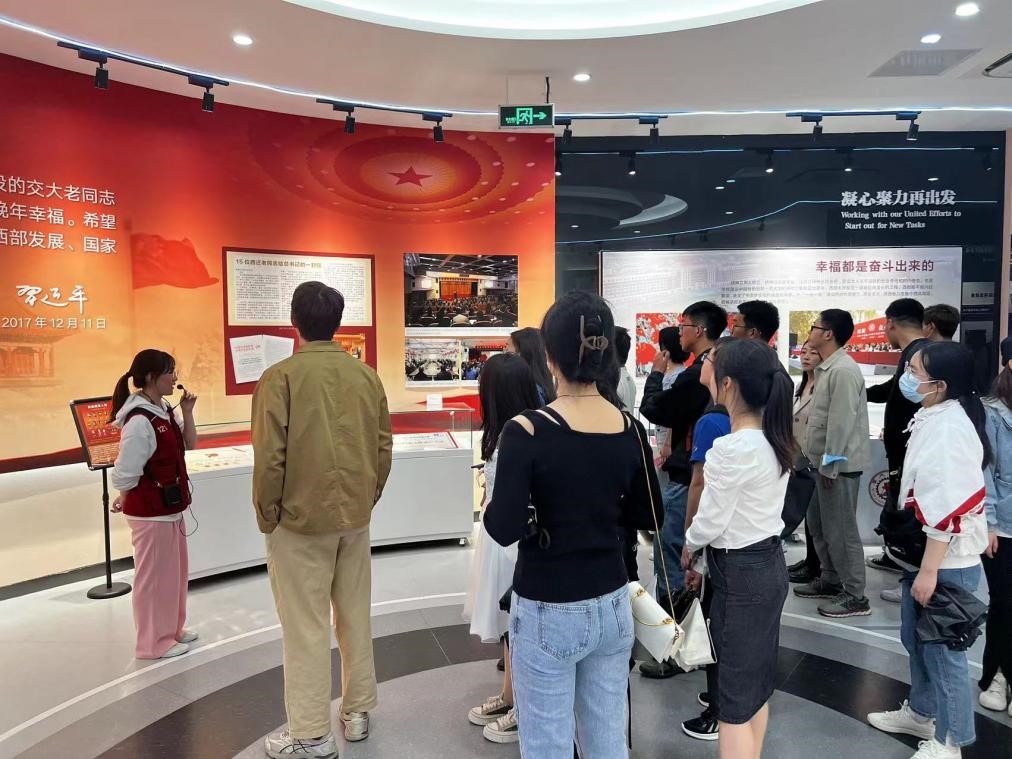 交大西迁不仅是教育史上的一次伟大行军,更是爱国主义的集中体现。近一个小时的参观活动结束后,全体同学在展馆一层合影留念,大家的收获和感悟颇多,纷纷表示作为交大学子,要传承好西迁精神,为西部发展、国家建设奉献智慧和力量。